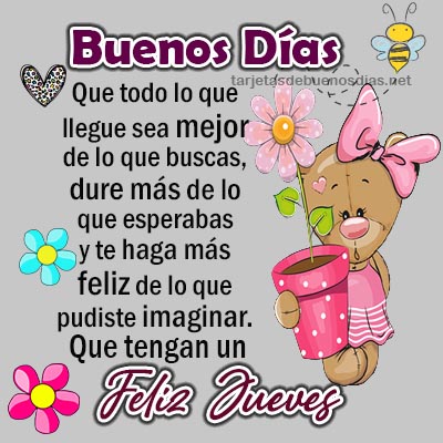 - Buenos días Hoy es jueves y te deseo lo mejor: salud para disfrutar, alegría para compartir y bendiciones que den sentido a tu jornada.