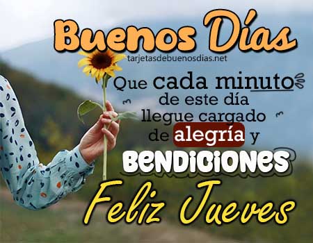 - Lindo y bendecido jueves Buenos días, que todo lo que hoy vivas sume paz, te acerque al amor y te llene de gratitud. Que tengas un jueves lleno de cosas buenas.