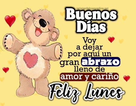 - Buenos días, feliz lunes. Que tengas una semana bonita, llena de cariño en tu vida y alegrías que te hagan sonreír.