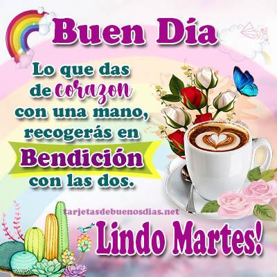 - Un saludo Buenos días, feliz martes. Que Dios te bendiga hoy y siempre, y que su protección divina cubra tu vida, tus pasos y todo lo que hagas.