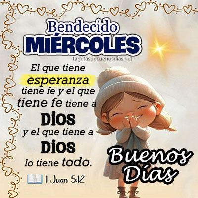 - Buenos días, hoy te envío un saludo lleno de fe, deseando que Dios te bendiga con un miércoles especial, tranquilo y feliz.