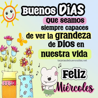 - Buenos Días Que tengas un miércoles hermoso, con razones para sonreír, cariño para compartir y bendiciones de Dios para ti y tu familia.