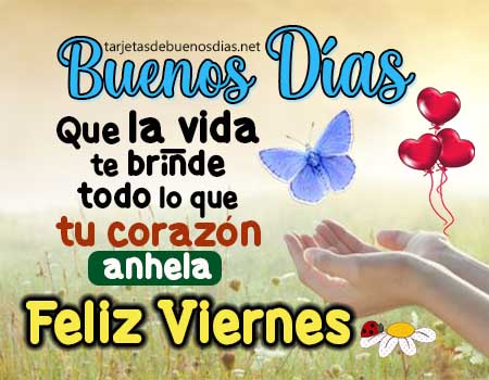 - Buenos días Feliz viernes, que la alegría toque tu puerta, que tu corazón esté en calma y que cada momento de este día te acerque a lo que sueñas.