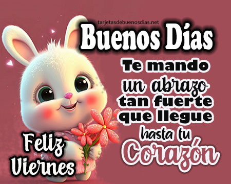 • Buenos días, feliz viernes bendecido. Te mando un abrazo lleno de cariño y mis mejores deseos para que este día sea hermoso y productivo.