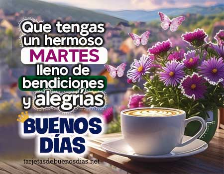 - Buenos días Que hoy vivas con alegría, recibas bendiciones inesperadas y disfrutes de todo lo bonito que la vida tiene preparado para ti. Feliz martes.