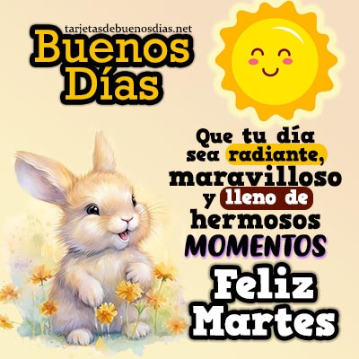 - Buenos dias Que tengas un martes bonito, donde cada instante te acerque a tus sueños y la esperanza te dé motivos para sonreír.