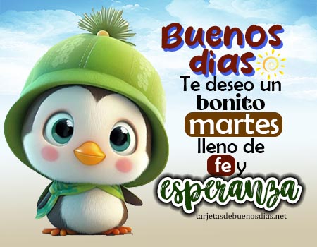 El martes es un día para avanzar con confianza, cuidar la salud, fortalecer la fe y mantener viva la esperanza. Un saludo de buenos dias lleno de cariño puede iluminar la mañana de alguien y recordarle que cada día trae consigo nuevas oportunidades para crecer y sonreír.