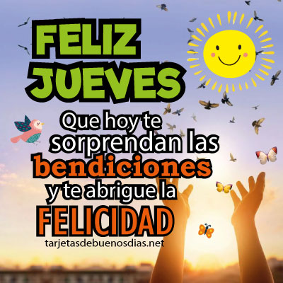 - Feliz jueves, que la alegría toque tu vida y se quede contigo.