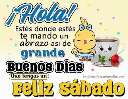 Con estas tarjetas de buenos días feliz sábado podemos enviar un saludo lleno de cariño y alegría a los seres queridos que se encuentran lejos y desearles un hermoso dia.
