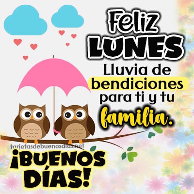 • Bonito día, feliz lunes. Que la vida te sorprenda con cosas buenas y que las bendiciones nunca falten en tu hogar.