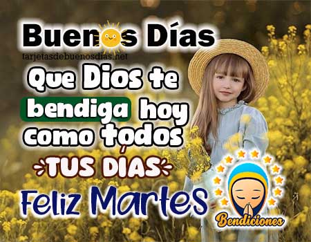 - Buenos días, feliz martes. Que Dios te bendiga y te regale un día hermoso, lleno de paz en el alma, salud en tu cuerpo y esperanza firme en el corazón.