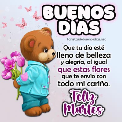 - Buenos días Que este martes sea tranquilo, que tus metas estén más cerca y que la prosperidad se abra paso en tu camino.
