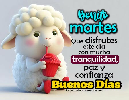 - Buenos días, feliz martes. Que la paz acompañe tu corazón, la confianza guíe tus pasos y la prosperidad llegue a tu vida en cada momento.