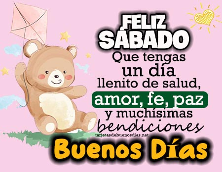 - Buenos días, feliz sábado. Que este día esté lleno de salud, unión familiar y esperanza que ilumine tu camino.