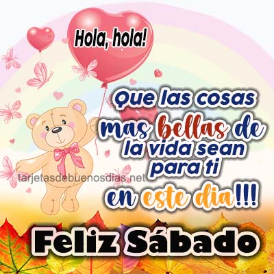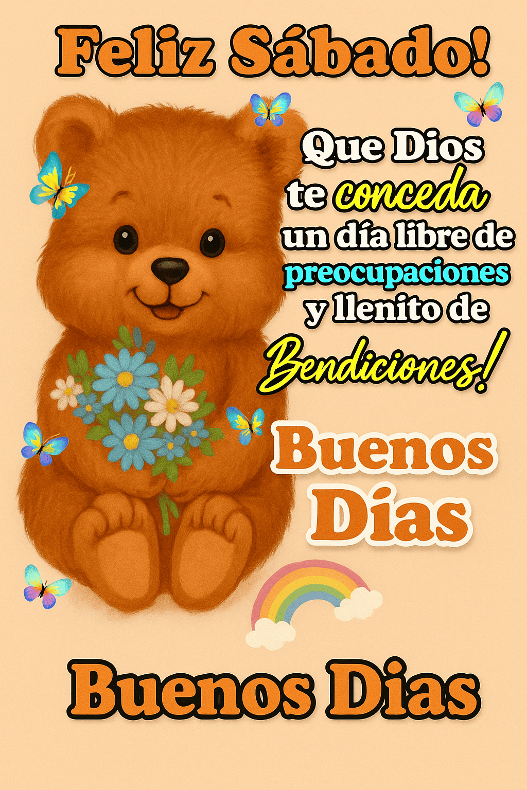 - Hola, Buenos días y feliz sábado, que este día te llene de alegría verdadera, momentos tranquilos y personas que te hagan sentir querido. Que tengas un fin de semana bendecido y en paz.