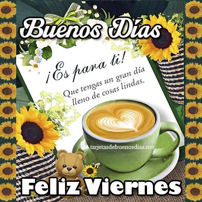 - feliz viernes, Hoy te deseo un día especial, con muchas bendiciones, buen ánimo y sobre todo salud para ti y los que amas. Que la alegría esté presente en cada detalle.
