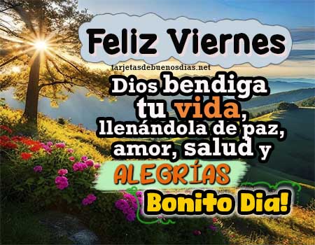 - Buenos días, feliz viernes que la alegría se quede contigo hoy, que la salud te acompañe en todo momento y que las bendiciones lleguen a tu vida sin medida.