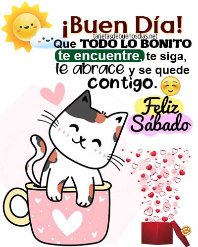 - Buenos días, feliz sábado. Que hoy las bendiciones lleguen a ti en forma de alegría, salud, buenos momentos y personas que te hagan bien.