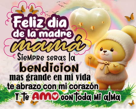 - feliz día Mamá, gracias por ser paciencia en los días difíciles y luz en los días grises. Que tengas un día lleno de amor, armonía y abrazos que reconforten tu corazón.